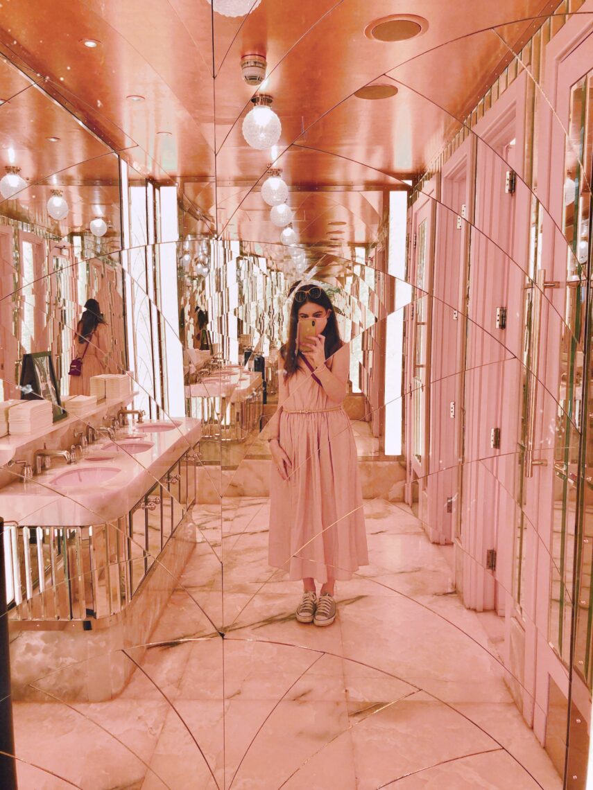 Arguably the coolest restaurant in Selfridges, the Brasserie of Light boasts beautiful interiors and artwork, including pieces by Damien Hirst and is worth the visit just for their toilets alone. We’re not kidding! From the pink sinks to the pink toilet bowls, this one-of-a-kind restroom features art-deco style mirrors all around so you’re completely immersed in pinkness! Did someone say mirror-selfie?!
