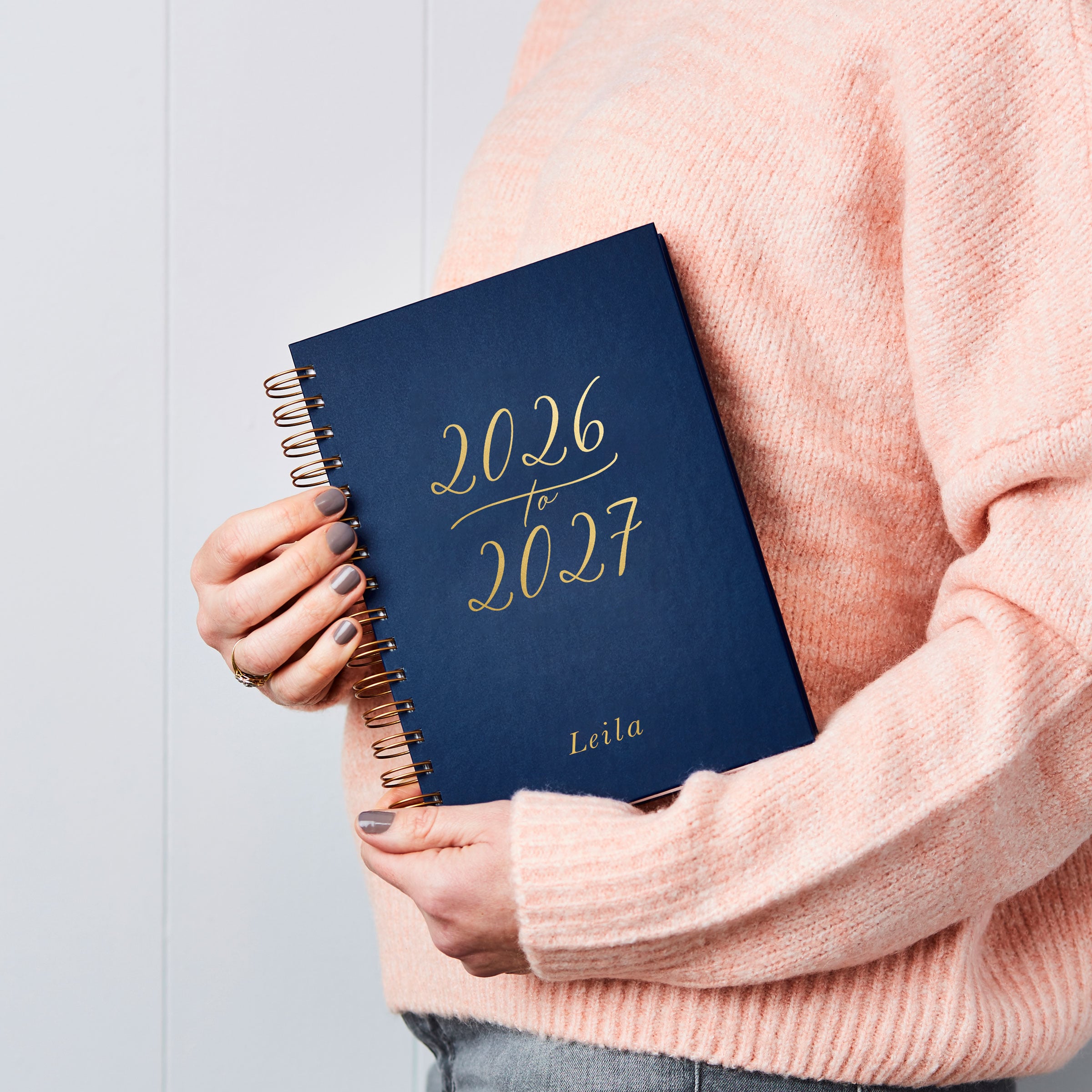 Lovingly made by hand in our studio. The luxury hardback covers are coated in a specialist book cover material that feels soft to the touch and printed with real foil. The 2026-2027 mid-year diary is filled with your choice of week-to-view or day-per-page diary pages for July 2026 – July 2027, a 2026 and 2027 yearly planner, monthly calendar spreads, space for reflections and goal setting and several notes pages printed on thick (120gsm) blank white paper. The weekly diary contains 152 pages (or 76 sheets) and the daily diary contains 382 pages (or 191 sheets). There is also the option to add a luxury personalised inner page. The book has wire binding so it can be easily flipped open or laid flat to capture diary dates.