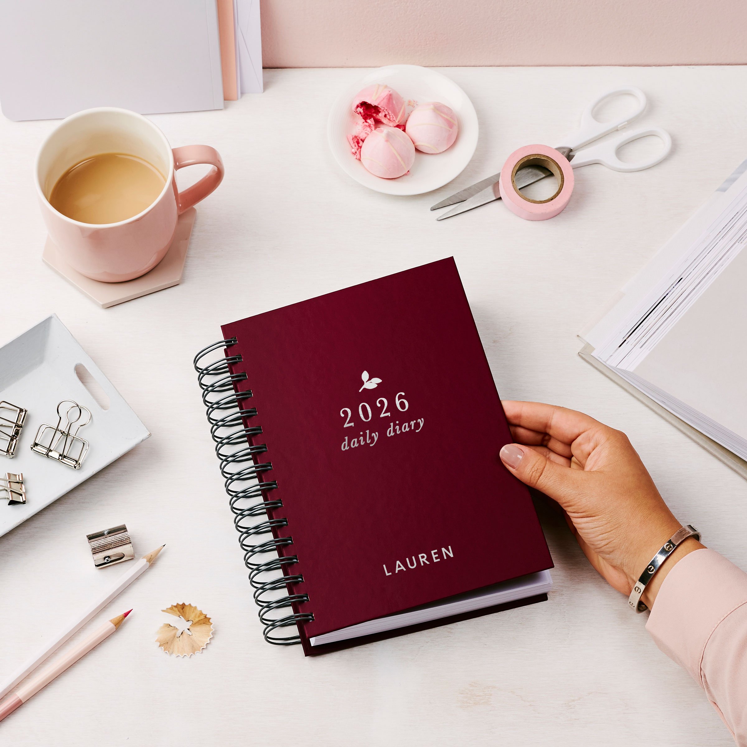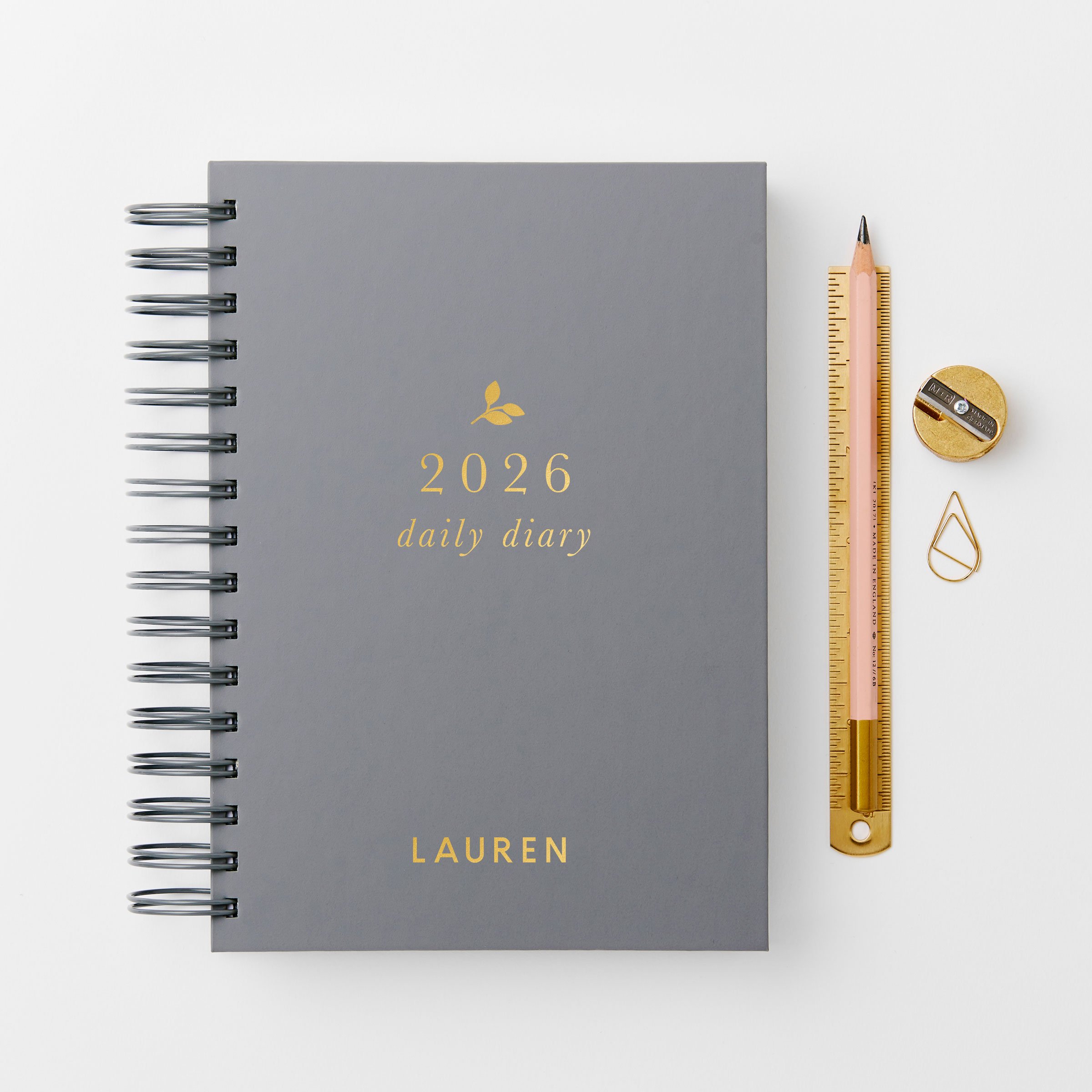 A luxury personalised foil-printed hardcover 2026 day-per-page diary with a chic classic design.