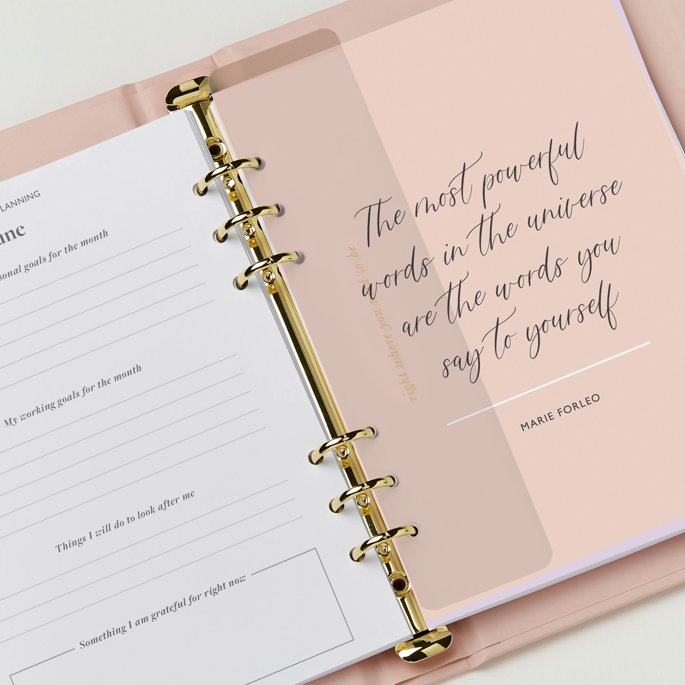 • Colour inspirational quote pages, which can be left in the planner or removed to display