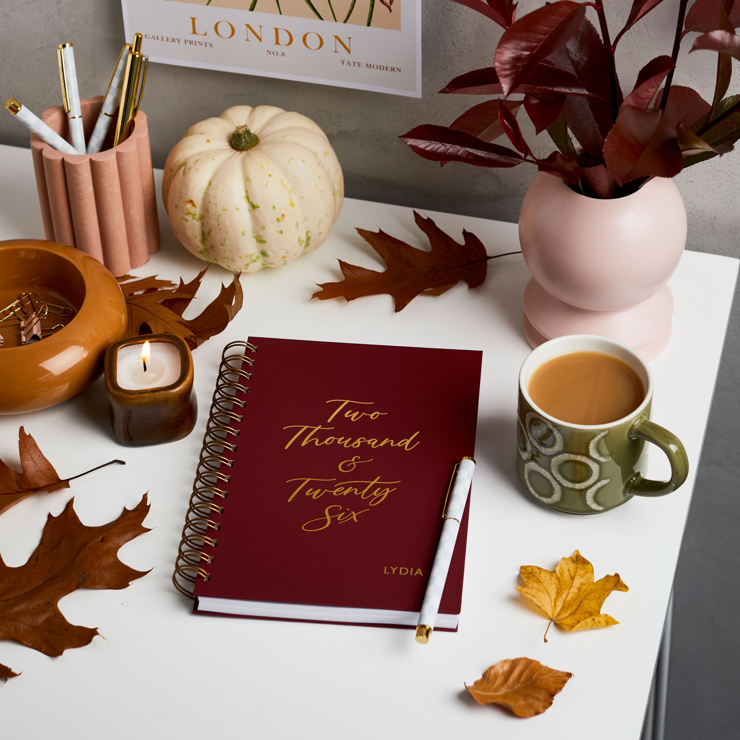 New year, new diary! Pencil in your plans with this delightful personalised nurture 2026 diary, featuring a stunning calligraphy font that reads ‘Two Thousand And Twenty Six”.