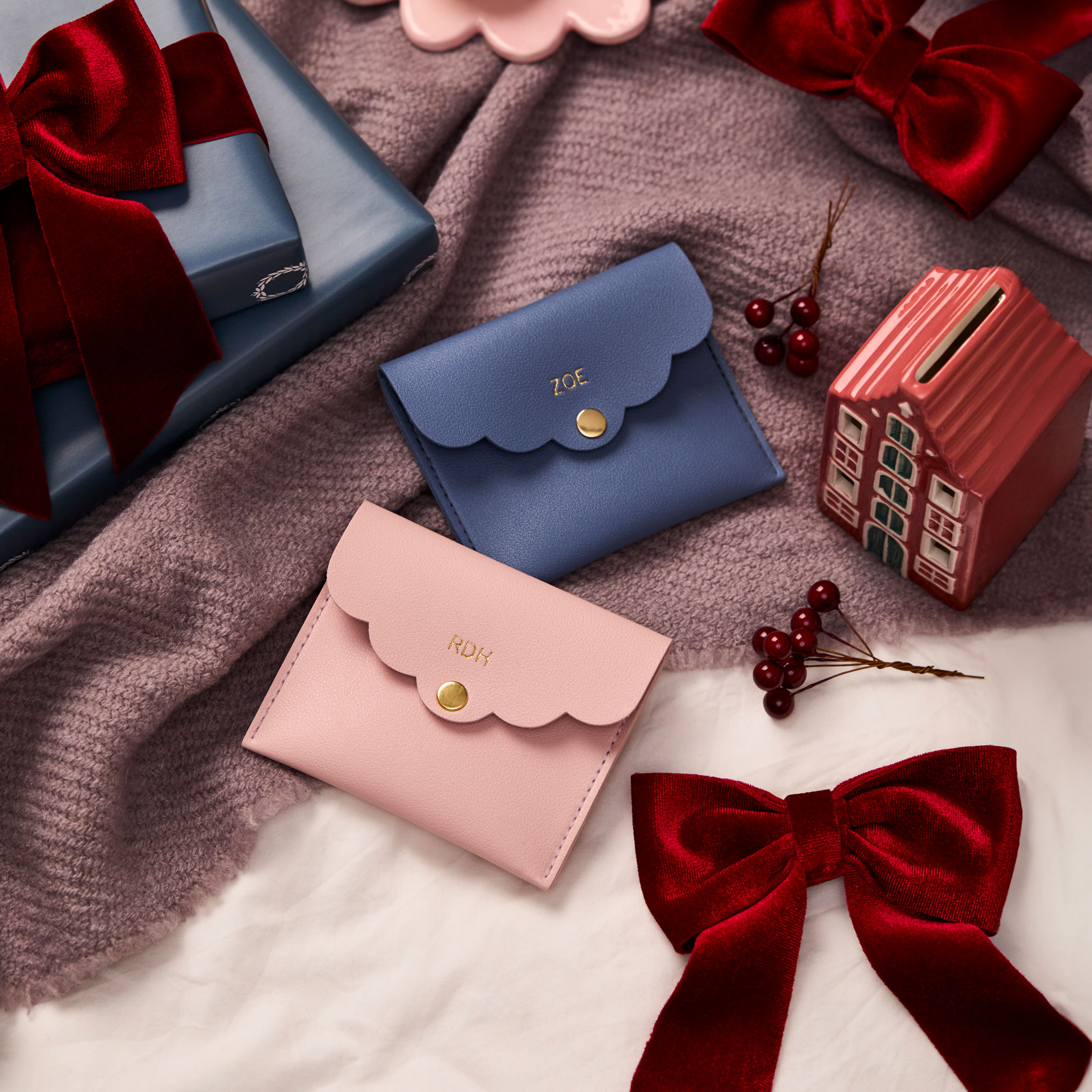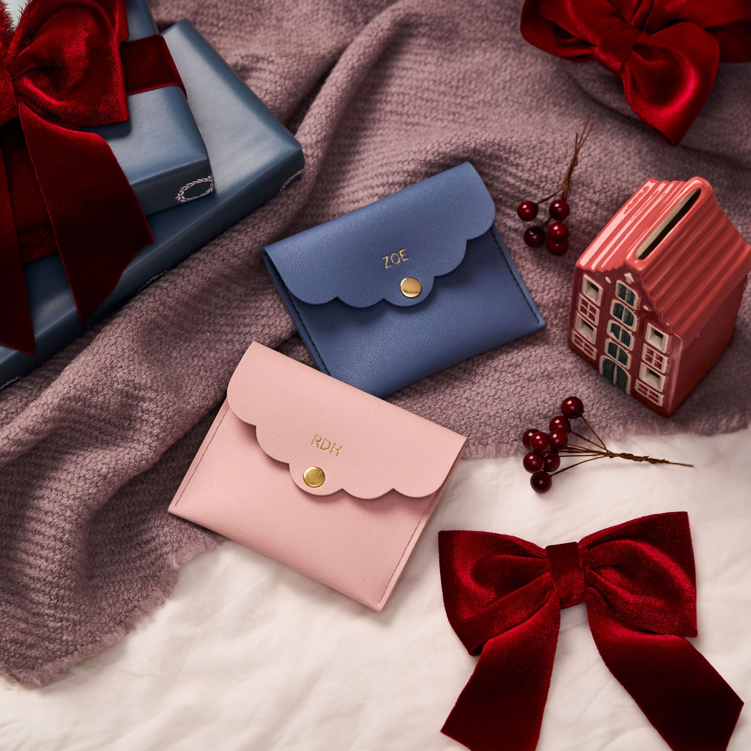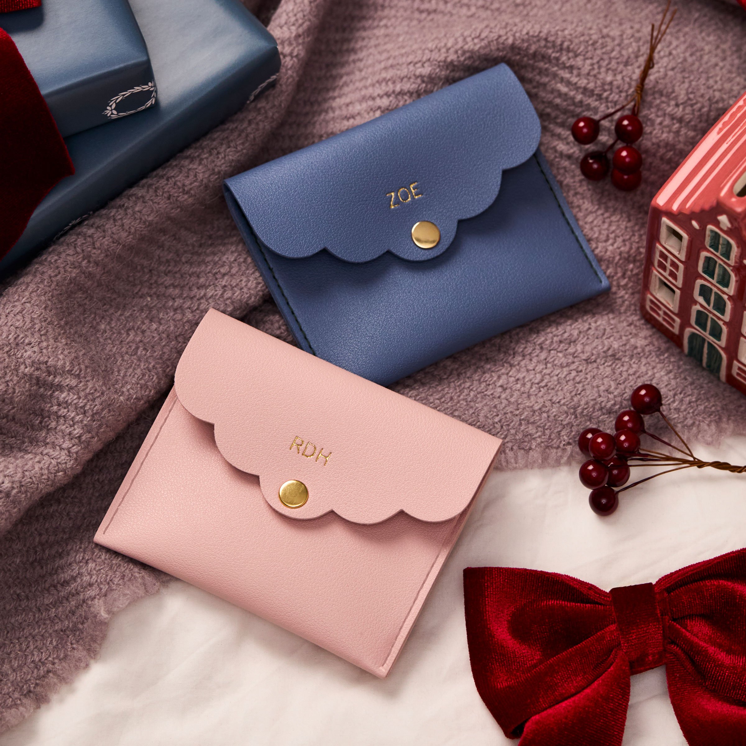 A wonderful stocking filler, secret santa gift or as a treat for yourself, the scallop mini pouch features a gold popper fastening and a stylish scallop edge.