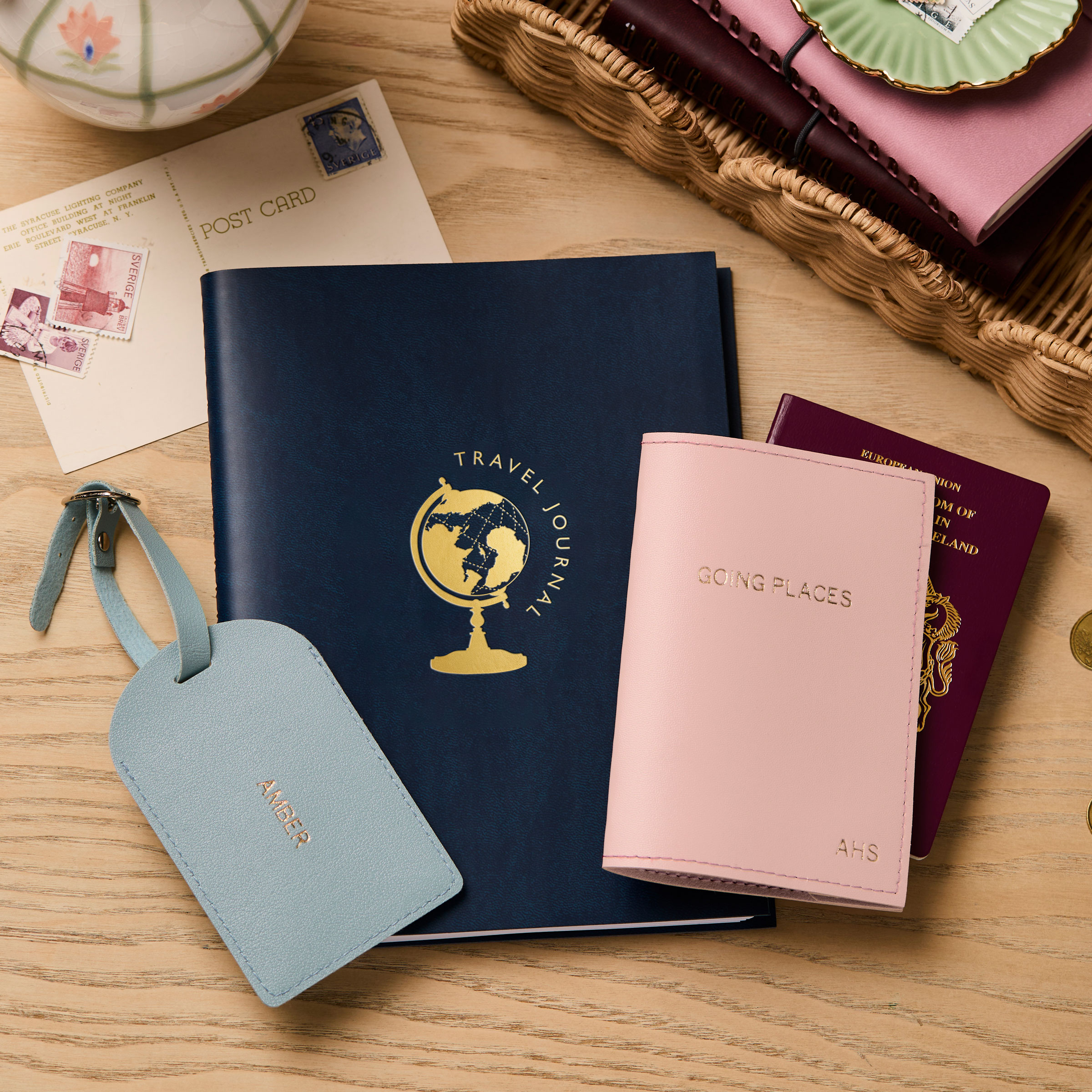 Included in the gift set is a foil-embossed personalised travel journal filled with inspiring prompts, a personalised passport holder and a personalised luggage tag. All three items are made from vegan-friendly faux leather, personalised with initials of your choice and packed into a gift box.