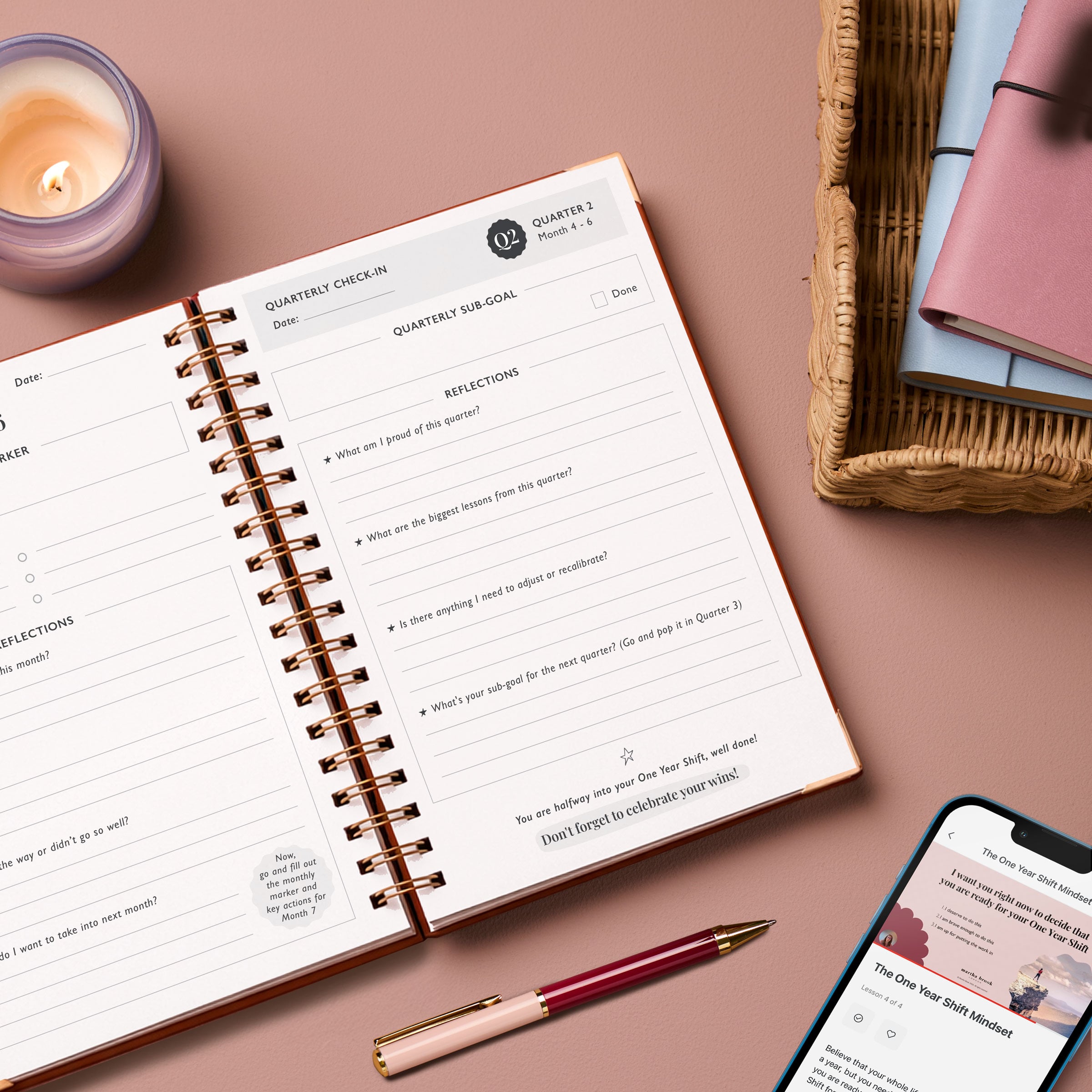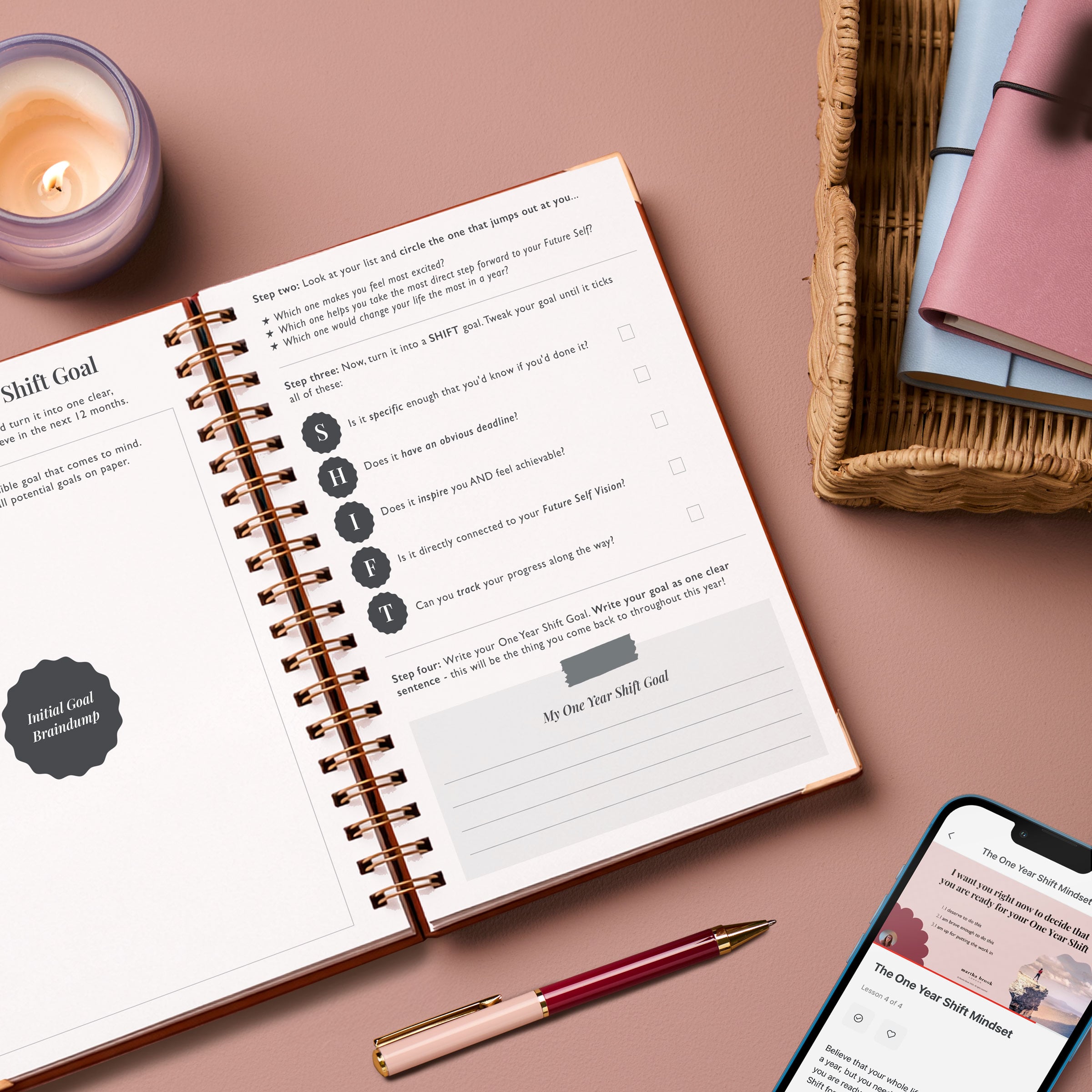 Before you begin The One Year Shift, make sure you have your very own One Year Shift Journal to hand! The ideal accompaniment to the course, the journal has been designed to be filled out as you move through each lesson.