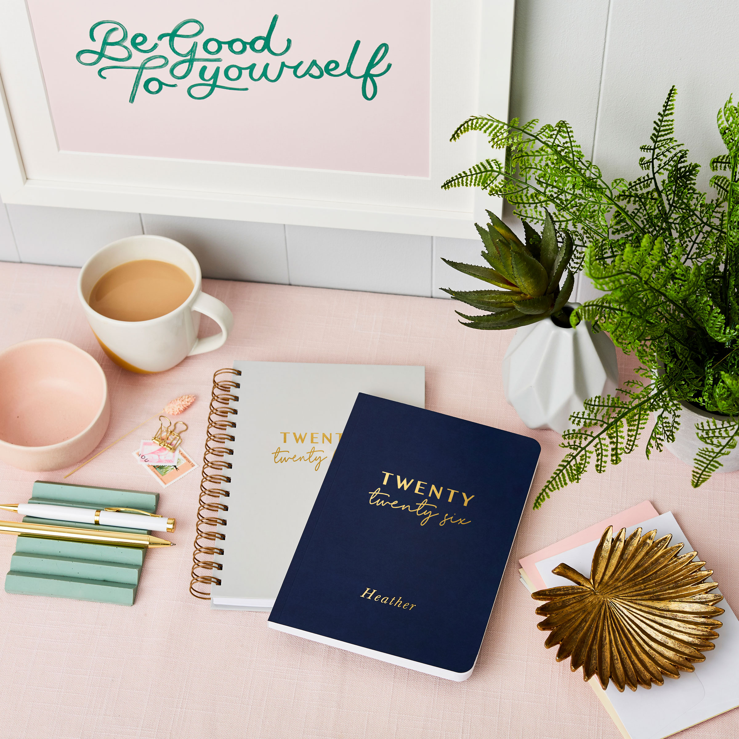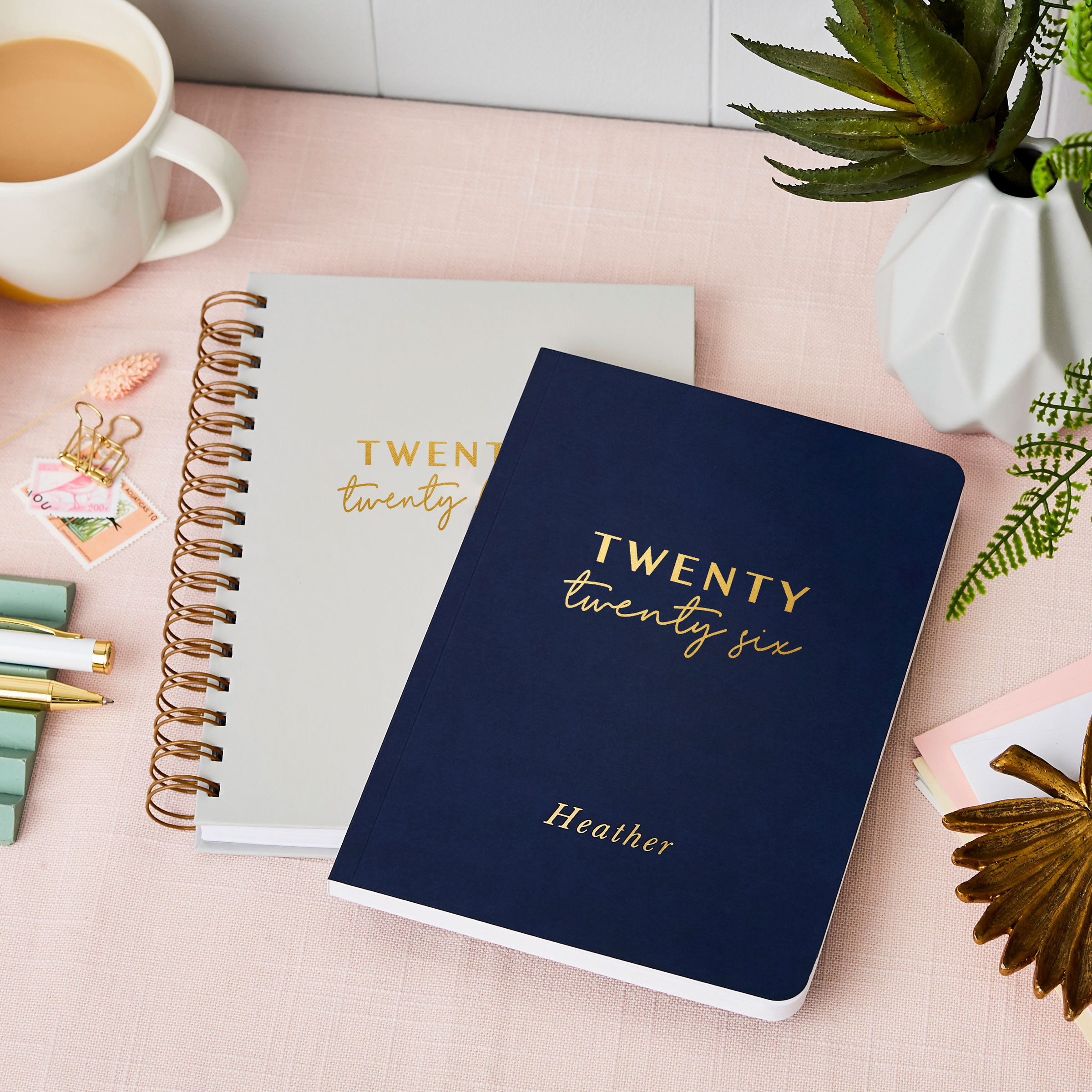 A stylish personalised Twenty Twenty Six 2026 Weekly Diary. Choose from a soft cover or luxury hard cover for this smart week-to-view 2026 diary, a range of colours and add your own personalisation to create the perfect diary.